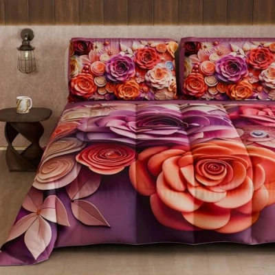PETTI Artigiani Italiani Winter Quilt, Duvet, Double Sided Solid Colour and Digital Floral Print 05 17, 100% Microfibre, Made in Italy
