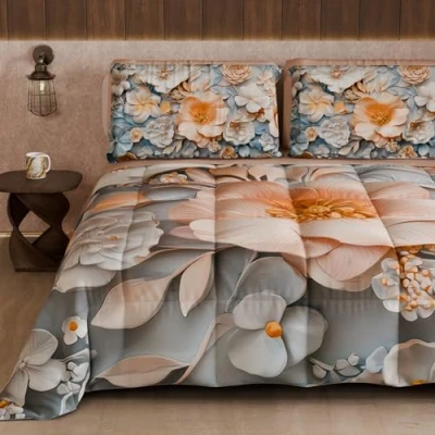 PETTI Artigiani Italiani Winter Quilt, Duvet, Double Sided Solid Colour and Digital Floral Print 05 20, 100% Microfibre, Made in Italy