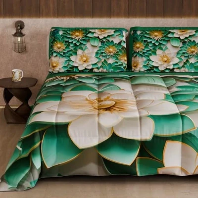 PETTI Artigiani Italiani Winter Quilt, Duvet, Double Sided Solid Colour and Digital Floral Print 05 7, 100% Microfibre, Made in Italy