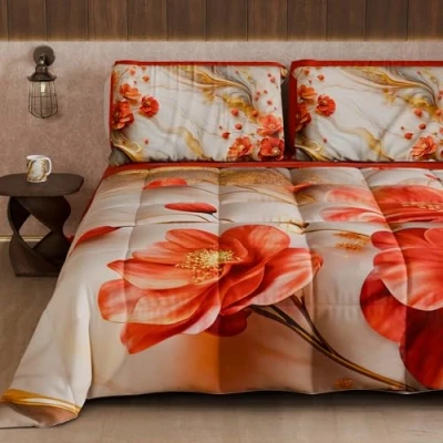 PETTI Artigiani Italiani Winter Quilt, Duvet, Double Sided Solid Colour and Digital Floral Print 06 2, 100% Microfibre, Made in Italy