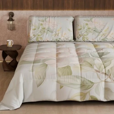 PETTI Artigiani Italiani Winter Quilt, Duvet, Double Sided Solid Colour and Digital Floral Print 25 172, 100% Microfibre, Made in Italy