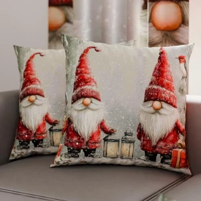 PETTI Italian Artisans Pair of 45x45 cm Microfiber Cushion Covers, Christmas Pillow Cases, Decor Cushions for Bedroom, Sofa, Living Room, Set 2 Gnome Case 02