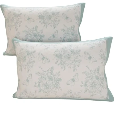 PETTI Italian Artisans Pair of 80x50 cm Microfiber Cushion Covers, Bedroom, Sofa, Living Room Decor Cushions, Set 2 Botanic 03 Celeste Pillowcase, 100% Made in Italy