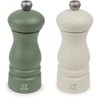 PEUGEOT Clermont Duo Pepper Mill + Salt 13 cm Classic Adjustment Beech Wood Made in France Fern Green & Feather White Colour