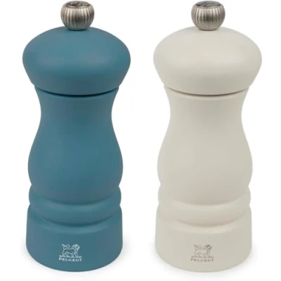 PEUGEOT Clermont Duo Pepper Mill + Salt 13 cm Classic Adjustment Beech Wood Made in France Sky Blue & Feather White Colour
