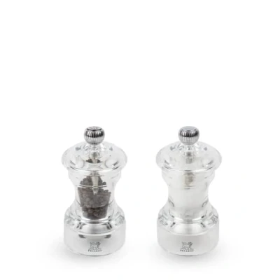 PEUGEOT Duo Bistro Pepper Mill + Salt 10 cm Classic Adjustment Acrylic Material Made in France Transparent Color