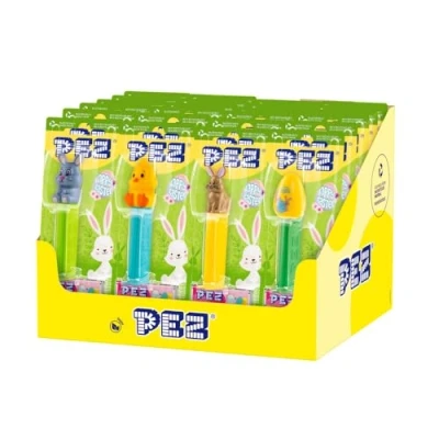PEZ Easter Character Sweet Dispenser, Lemon & Raspberry Flavoured Perfect for Baskets, Hunts Gifting, Multipack of 12 (2 x Refill Pack Per Dispenser)