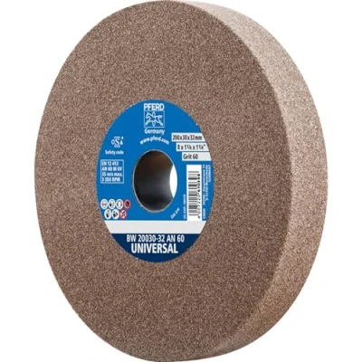 The hard sanding disc with hardness M is ideal for universal use in the workshop area The universal design impresses with its long service life, high dimensional stability and high grinding performance The straight grinding disc can be used for deburring, sharpening and edge processing (chamfering, rounding) of steel, cast steel, stainless steel (INOX), cast iron Thanks to the integrated reducing sleeves, the ceramic-bound sanding disc can be mounted on almost any sanding bench spindle (32/25/20/16 mm) Box contents: 1 x Pferd universal sanding disc with diameter 200 mm and width 30 mm / bore: 32 mm + reducing sleeves / abrasive: normal corundum (AN) / grain size: 60 / hardness M hardness, Weight: 2.20462262 pounds, Manufacturer: August Rüggeberg GmbH & Co. KG