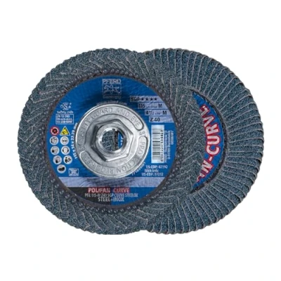 PFERD 67212 Polifan Zirkon Curve Radial Type Flap Disc, Zirconia Alumina, 4 1/2" Diameter, 5/8 11 Thread, 13300 RPM, 40 Grit