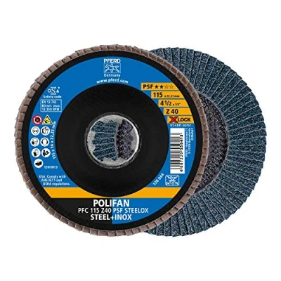 The conical Polifan fan disc is characterised by a fast work progress and high economy thanks to aggressive cutting performance The PSF serrated washer is also suitable for low-performance angle grinders and has a good service life Tools with X-LOCK can also be used on conventional angle grinders with M14 thread Box contents: 10 x Polifan fan disc PSF Steelox from Pferd / with 115 mm diameter / conical design PFC / attachment: X-Lock (22.23 mm) / abrasive: zirconia corundum / grain size 40 International products have separate terms, are sold from abroad and may differ from local products, including fit, age ratings, and language of product, labeling or instructions., Weight: 0.02 Pounds, Manufacturer: August Rüggeberg GmbH & Co. KG