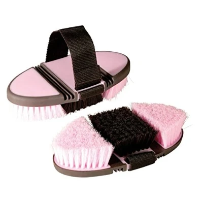 Flexible, hand-adapting horse brush Made of elastic, malleable plastic With PVC (polyvinyl chloride) inserts Adjustable wrist strap