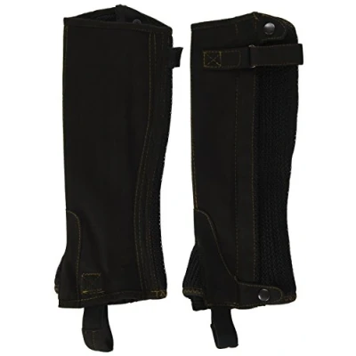 Faux leather mini chaps with subtle, pretty contrasting seams Full-length, concealed elastic insert Robust zip with press stud ends Velcro closure for calf width adjustment Hand wash