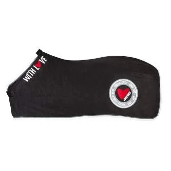 Pleasantly soft fleece blanket for horses in black or grey Featuring a chest closure with metal eyelets and trendy Soulhorse logo prints The fleece fabric absorbs sweat to a large extent Can be used as a cooling blanket, stable blanket, pasture blanket or transport blanket Washable up to 30°C. Material: 100% polyester (fleece)