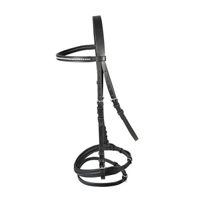 Trendy two-tone bridle With an underlaid headband studded with small rhinestones Matching coloured English noseband With additional straps Includes reins