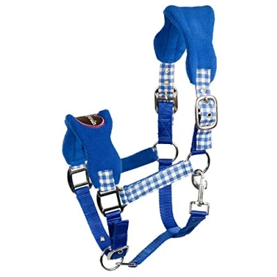 AmazonOn noseband and headpiece covered with polar fleece. Checked details. Fun patch on the bridge of the nose. Adjustable on the noseband and headpiece. Unusual design.