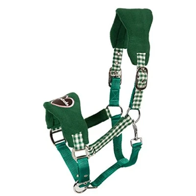 On noseband and headpiece covered with polar fleece. Checked details. Fun patch on the bridge of the nose. Adjustable on the noseband and headpiece. Unusual design.