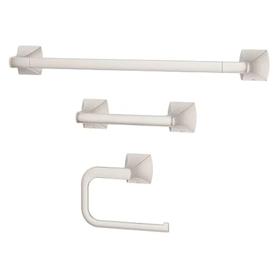 BATHROOM HARDWARE SET – Includes towel bar, towel ring, and toilet paper holder; Constructed from premium metal for long-lasting durability; concealed screw installation hides the mounting screws to create a seamless look and feel EASY TO INSTALL – Mounting hardware included; superior mounting posts for secure installation; includes instruction guide for drywall or stud installation EASY TO CLEAN – Only use a soft damp cloth to clean and shine; avoid use of polish, detergents, abrasive cleaners, organic solvents, or acid which may cause damage BRUXIE BATH COLLECTION – Bruxie creates a warm yet modern aesthetic in any space; It’s the perfect way to start and end each day, while providing a calm yet inspiring look in your home so you’ll feel relaxed with whatever comes your way LIMITED LIFETIME WARRANTY – Trusted since 1910, Pfister Faucets has been a leader in quality plumbing products; all faucets are backed by our Limited Lifetime Warranty, covering finish and function for as long as you own your home, Weight: 2.753 Pounds, Manufacturer: Pfister