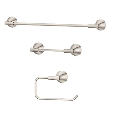 Pfister BTB WLL3K Willa Bathroom Accessories Set Bar, Toilet Paper Holder, and Towel Ring, Brushed Nickel