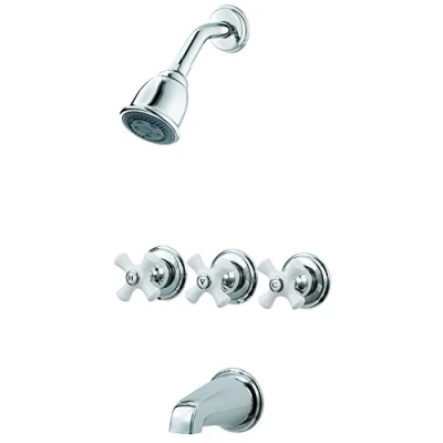 Pfister LG01 8CPC 3 Tub & Shower Faucet with Metal Cross Handles, Combo Chrome/White Porcelain