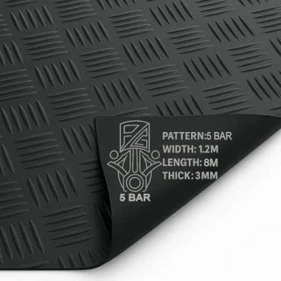 PG Rubber Matting Roll 3mm Thick 1.2m x 0.5m 20m Heavy Duty Non Slip Waterproof Flooring for Garage Gym Van Shed Multiple Patterns Sizes (5 Bar (Black), 8m 1.2m)
