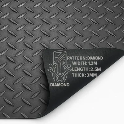 PG Rubber Matting Roll 3mm Thick 1.2m x 0.5m 20m Heavy Duty Non Slip Waterproof Flooring for Garage Gym Van Shed Multiple Patterns Sizes (Diamond (Black), 2.5m 1.2m)