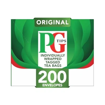 PG Tips 200 individually wrapped tea bags are our most refreshing & flavourful original blend, expertly crafted by our Master Blenders using the finest and freshest tea leaves We know enjoying a fine cuppa goes far beyond selecting the finest blend; Thats why our envelopes are fully recyclable and the tagged tea bags are biodegradable and plant-based Our invidually wrapped tea tags are perfect for hygiene and freshness for the office or a large gathering or occasion PG Tips is proud to be the first UK tea brand to achieve Rainforest Alliance Certification The UK’s Favourite tea (You Gov Q4 2023, UK’s Favourite beverage)
