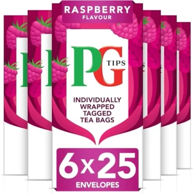 PG Tips , Raspberry Leaf Tea Bags Bulk . Individually Wrapped String & Tagged Refreshing Fruit Flavoured 6 Packs 150 Envelopes