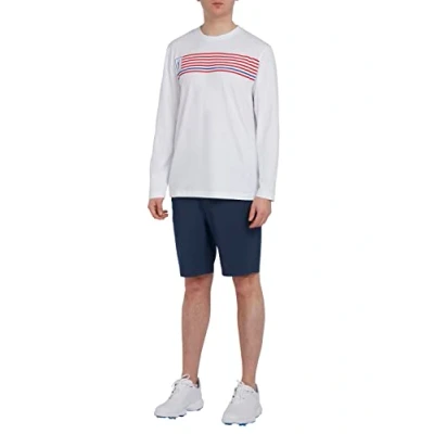 PGA Tour Men's T Shirt, Americana Print, Crew Neck, Long Sleeved, Regular Fit, Casual Top, Bright White, L