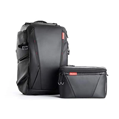 Two-in-one bag. Use as a separate backpack and shoulder bag or together with a built in pouch. Expandable to a maximum capacity of 35L - Backpack expands to 30L and Shoulder bag to 5L Dedicated and modular space for cameras, lens, batteries (with charge level indicator pockets) drone, laptop of 15.6 inch /16 inch Macbook, gimbal stabiliser and full accessory kit / clothing. Designed for all-weather conditions with water and wear resistant material and built-in rain cover. The soft cushion exterior with mesh design and air tunnels is designed to provide extra comfort and keep your back dry. Anti-theft compartment has lockable zippers and designed to withstand penetration keeps your passport, phone and wallet safe.