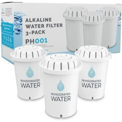 PH001 3 Pack Alkaline Water Filter Cartridges Replacement Cartridge for Invigorated Jug Purifier, Filtration System Pure Drinking 1.136 Liters Capacity