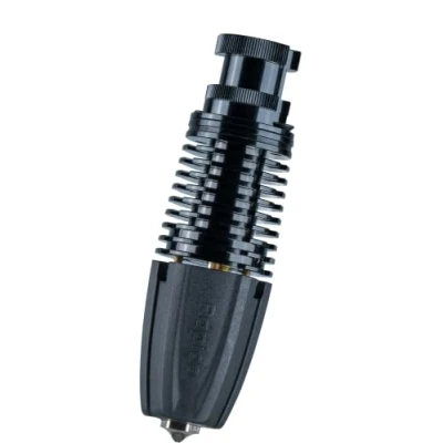 New heatblock design features a larger melt zone to suit the demands of high speed and high temperature printing. Evenly heated thanks to cylindrical ceramic heating unit. Integral frame rigid structure of titanium alloy screws makes lower heat conductivity possible, and realize the function of one-handed nozzle change. Thin-walled heatbreak, eliminating heat creep and clogging, while realizing an excellent thermal insulation. Unique structure design makes fast switching between high flow and ultra-high flow printheads possible. Interchangeable design of different types of nozzles suit the demands of high temperature and fiber filaments printing.