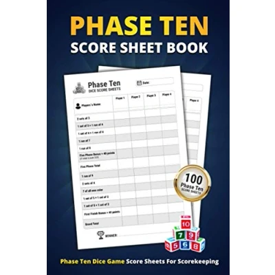 Phase Ten Score Sheet Book: 100 Sheets For Scorekeeping Elegant Dice Game Record Keeper Book