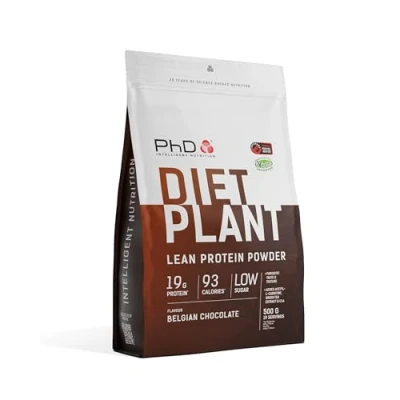 PhD Nutrition Diet Plant, Vegan Protein Powder Plant Based, Belgian Chocolate, High Protein, 20 Servings Per 500g Bag