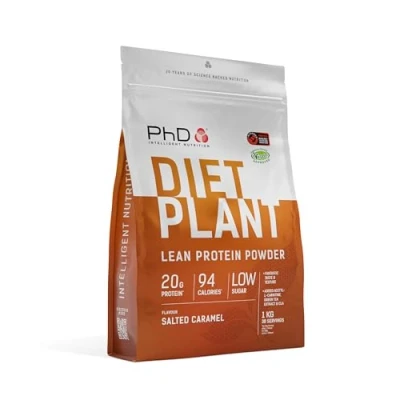 PhD Nutrition Diet Plant, Vegan Protein Powder Plant Based, Salted Caramel, 20g of Protein, 40 Servings Per 1 Kg Bag