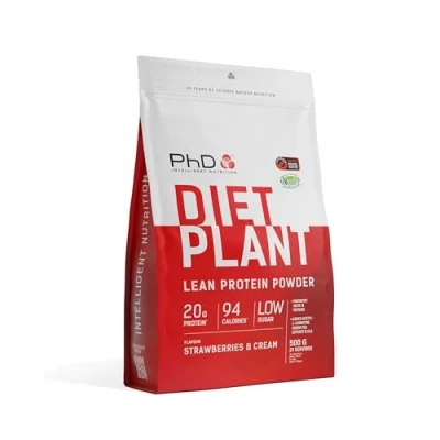 Strawberries and Cream Vegan Protein Powder: Includes 1 PhD Nutrition Diet Plant, High Protein Lean Matrix, Vegan Protein Powders, Strawberries and Cream Flavour, 500g Bag Diet Plant Protein: Provides a complete and premium plant protein rich in essential amino acids (EAA's) as well as branched-chain amino acids (BCAAs) and is digested quickly and efficiently by the body Vegan Approved: Vegetarian Society Approved vegan protein powder to make delicious protein shakes that are low carb and low calorie Pre and Post Workout Shakes: Plant protein powders contribute to the maintenance and growth of muscle mass and is the ideal protein powder for both pre and post-training sessions High Protein Strawberries and Cream Shake: Diet protein powders provide 19g vegan protein per serving and less than 100 kcals; PhD Nutrition Diet Plant can be used to build lean muscle or drop unwanted body fat