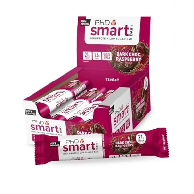 PhD Smart Hight Protein Bar Low Sugar, Nutritional Bars/Protein Snacks, Chocolate Raspberry Flavour, 20g of Protein, 64g (12 Pack)
