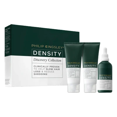 Protect hair density and quality over time and encourage the best scalp environment for healthy hair growth with this 3-step discovery collection from Philip Kingsley. Showcasing the essential products from their award-winning Density range. This collection contains: Philip Kingsley Density Thickening Shampoo 75ml A gentle sulphate-free shampoo that helps to cleanse and volumise hair, without stripping away moisture. The formula works to support the scalp, in order to promote an optimal environmental for healthy hair growth. Philip Kingsley Density Thickening Conditioner 75ml Discover silky, glossy locks with this lightweight conditioner. Boasting detangling properties, this formula seeks to enhance manageability, while encouraging a thicker look. Philip Kingsley Density Preserving Scalp Drops 85ml A lightweight serum with an instant feeling of stimulation, which is clinically proven* to help SLOW HAIR LOSS & REDUCE SHEDDING after 3 months use. Proven to reduce hair fall and preserve hair density with continued use. *Independent Clinical Trial of Density Preserving Scalp Drops based on a minimum of 3 months daily usage.