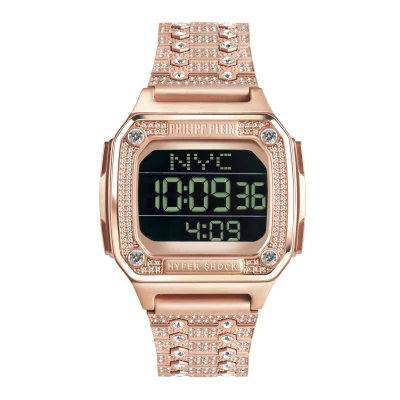 This Philipp Plein Hyper $hock Digital Watch for Women is the perfect timepiece to wear or to gift. It's Rose Gold Rectangular case combined with the comfortable Rose Gold Stainless steel watch band will ensure you enjoy this stunning timepiece without any compromise. Operated by a high quality Quartz movement and water resistant to 5 bars, your watch will keep ticking. This casual and modern watch is perfect for all kind of casual activities, indoor activities or daily use, it's also a great gift for family and friend. -The watch has a calendar function: Day-Date, Stop Watch, Timer, Alarm, Light High quality 19 cm length and 22 mm width Rose Gold Stainless steel strap with a Fold over with push button clasp Case Measurement: 40x44 mm,case thickness: 12 mm, case colour: Rose Gold and dial colour: Black