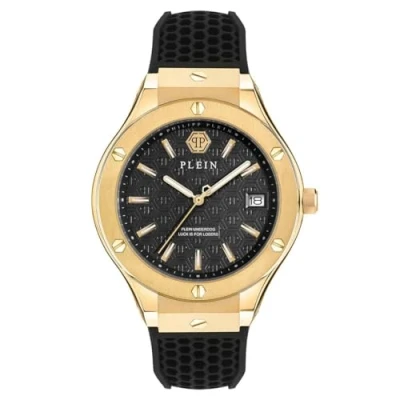 Plein Underdog is a new design that injects a surge of power and masculinity into the Philipp Plein universe. This Analogue watch has a calendar function: Date as well as Luminous Hands and Luminous Numbers High quality 21 cm length and 17 mm width Black Silicone strap with a Buckle Case diameter: 44 mm,case thickness: 10.45 mm, case colour: Gold and dial colour: Black Water resistant: 5 bars -Weight: 90 g The watch is delivered in an original gift box and has a warranty of 2 years