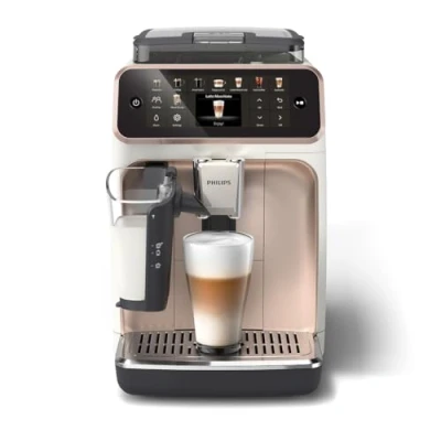 Philips 5500 Series Fully Automatic Espresso Machine 20 Hot & Iced Coffees, Quick to Clean LatteGo Milk System, 40% quieter with SilentBrew, QuickStart, White (EP5543/90)