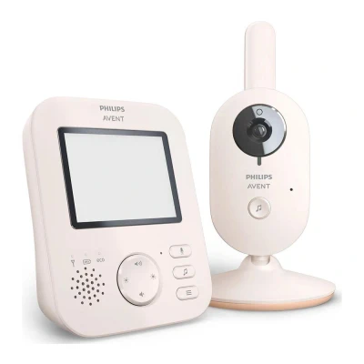 Keep a watchful eye over your little angel with this Philips Avent video baby monitor. Its 2.4 GHz wireless technology gives you a private, secure connection with minimal interference. That means you can relax knowing your little one is safe. The 2.8" colour screen with 2x zoom and infra-red night vision lets you see your baby clearly, day or night. And you'll hear every giggle, gurgle and hiccup thanks to its crystal-clear sound. There's even a talk back function so you can soothe your baby from anywhere in your home.Good to know- With a range of up to 300 m, you can stay connected even when you're outside or in another room- The ECO mode saves power by switching off the audio and video when it's quiet- Choose from six lullabies and white noises to help your baby sleep soundly- The rechargeable parent unit lasts up to 12 hours on a single charge