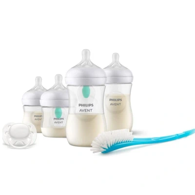 The Philips Avent bottle set makes feeding and soothing your newborn easier. The Natural Response teats mimic the shape and feel of a breast, helping your baby latch on and feed comfortably. With a range of flow rates, you can personalise the bottle to suit your baby's feeding pace. Handy if they're not taking enough milk. And the AirFree vent keeps air away from baby's tummy, reducing trapped wind and discomfort.Good to know- The ergonomic bottle shape is easy to hold for both parents and babies- Its no-drip teat design stops milk from flowing when your baby pauses, reducing waste and mess- The set includes four BPA-free bottles, an ultra-soft soother and a bottle brush