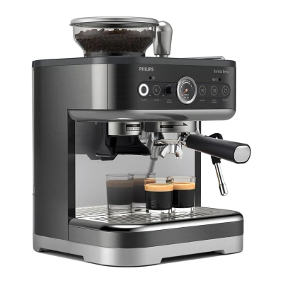 Indulge yourself in a world of flavour with this Philips Barista Brew coffee machine. Its 250g bean container preserves the freshness of the beans, locking in flavour and aroma. The stainless steel portafilter gives you a consistent extraction across the coffee puck. That means you get a bolder espresso with a deliciously foamy crema. Prefer something a bit more milky? Create velvety smooth lattes and cappuccinos with the stainless steel milk jug and steam wand. Now you won't have to leave the house to enjoy the perfect cup.Good to know- Enjoy a rich Americano with one push of a button - perfect on those early morning starts- An integrated pressure gauge makes sure the water pressure is just right for the best extraction- The PID temperature control makes sure your morning pick-me-up is brewed at the perfect temperature- Its conical burr grinder has 15 grind sizes so you can enjoy your coffee just the way you like it- The integrated tamper lets you tamp the coffee grounds evenly so every shot is packed with flavour