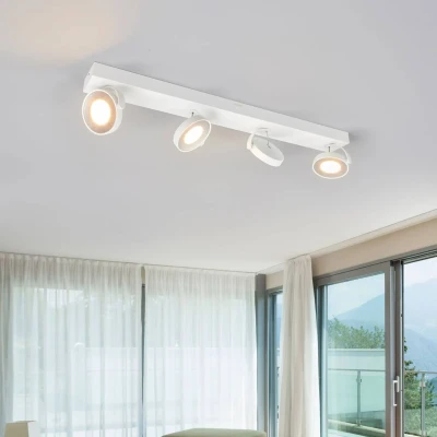 Modern-looking Clockwork LED ceiling spotlight with a white finish This LED ceiling spotlight goes very well with modern ambiences; whilst the white finish means that it is very versatile. The lamp heads of the ceiling spotlight have a round yet flat shape, and can be moved on the hinges. The four-bulb version means that this light can provide bright illumination that can be adapted to suit the room in question. Clockwork is ideal for lighting a kitchen or a ceiling in the living room or hallway. The modern design is low-key yet stylish.