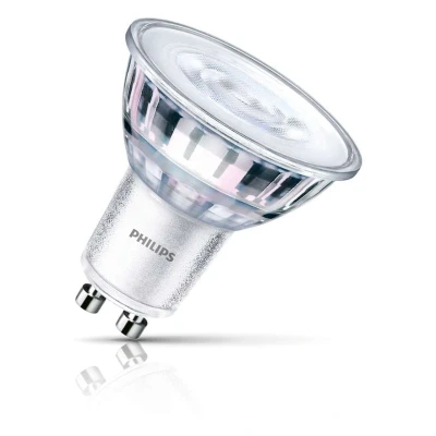 Upgrade your lighting with the Philips CorePro LEDspot GU10, a premium LED spotlight that blends energy efficiency with superior light quality. Designed as a high-performance replacement for traditional 43W Halogen GU10s, this 3.5W LED bulb offers equivalent brightness and enhanced colour rendering, while using only a fraction of the energy.With a CRI of 90, this spotlight provides excellent colour accuracy, making it ideal for spaces like living rooms, kitchens, retail displays, and galleries where vibrant, true-to-life colours are essential. Its 2700K warm white light creates a cosy atmosphere, perfect for both residential spaces and hospitality environments like restaurants and hotels.Fitting easily into existing GU10 2-pin twist and lock (10mm apart) fixtures, this spotlight boasts a 15,000-hour lifespan, far outlasting halogen alternatives. The 36 beam angle ensures precise, focused lighting, ideal for accent and task lighting.With minimal heat output and no UV or infrared radiation, it's safe for use in heat-sensitive areas like artwork displays or food presentations. The Philips CorePro LEDspot GU10 combines a high CRI, and energy efficiency, making it a top choice for home or commercial lighting needs.