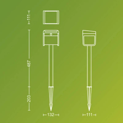 Ezra UE LED solar ground spike light with sensor Ezra is a solar-powered LED light made of plastic that can be quickly stuck into the ground anywhere on your property using the ground spike. It is equipped with a daylight and motion detector so that the light is only activated when needed. The sensor can be switched to three different modes: Dual-Bright mode (2): Soft ambient light as basic lighting, increased brightness when motion is detected. Suitable when there is sufficient sunlight for the panel to charge. Sensor mode (1): No ambient light, light is only switched on for a certain time when motion is detected. Suitable in winter or when there is little sunlight; the battery can last up to 2 weeks without recharging. Off mode (0): Neither light nor sensor activity is switched on; default setting in the packaging to conserve the battery.