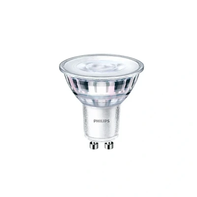 Upgrade your lighting with the Philips CorePro LEDspot GU10, a premium LED spotlight that blends energy efficiency with superior light quality. Designed as a high-performance replacement for traditional 50W Halogen GU10s, this 4.6W LED bulb offers equivalent brightness and enhanced colour rendering, while using only a fraction of the energy.With a CRI of 90, this spotlight provides excellent colour accuracy, making it ideal for spaces like living rooms, kitchens, retail displays, and galleries where vibrant, true-to-life colours are essential. Its 2700K warm white light creates a cosy atmosphere, perfect for both residential spaces and hospitality environments like restaurants and hotels.Fitting easily into existing GU10 2-pin twist and lock (10mm apart) fixtures, this spotlight boasts a 15,000-hour lifespan, far outlasting halogen alternatives. The 36 beam angle ensures precise, focused lighting, ideal for accent and task lighting.With minimal heat output and no UV or infrared radiation, it's safe for use in heat-sensitive areas like artwork displays or food presentations. The Philips CorePro LEDspot GU10 combines a high CRI, and energy efficiency, making it a top choice for home or commercial lighting needs.