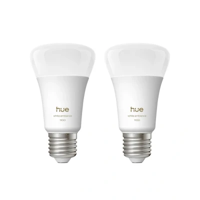Philips Hue Smart LED A60 Bulb, White Ambiance, E27 Base, 8.1W, Full Spectrum Light 1000K 20000K, 1100 Lumens, Dimmable, Works with Alexa, Google Assistant, and Apple Home, 2 Pack