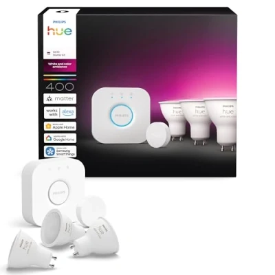 Philips Hue Starter Kit: Bridge + 3 GU10 Smart Spotlights Button, White and Color Ambiance, Light Hub, Works with Apple Home, Amazon Alexa, Google Assistant, Samsung SmartThings