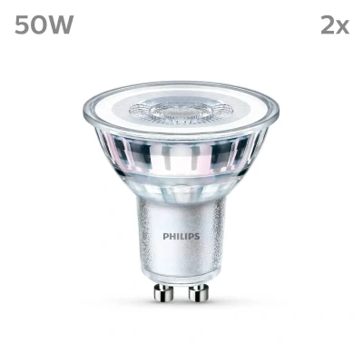 PHILIPS LED Classic Spot Light Bulb 2 Pack [Cool White 4000K GU10] 50W, Non Dimmable. for Home Indoor Lighting